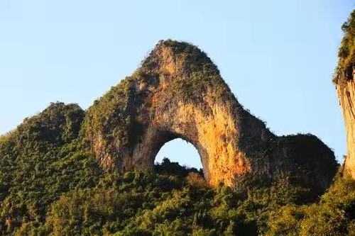 12:00午餐我们在“赏月路”享用地道农家饭(鲜灵灵的啤酒鱼、香喷喷的农家鸡、绿油油的青菜,听着都很诱人呀„)在这里,我们可于最好的角度欣赏阳朔名景—【月亮山】,观“月宫”之阴晴圆缺。