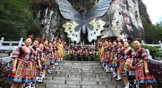 10:30后游【天籁•蝴蝶泉】(门票已含,游览时间1。5小时)景区以山、水、石、洞,泉水瀑布及原汁原味原生态的侗、苗风情而得名,可与著名的101侗寨寨主及苗王的后裔亲密接触,与侗哥苗妹欢聚一堂,倾听天籁之音---多情的侗族大歌。