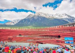 大型歌舞《丽江千古情》演出重现丽江长达千年的历史与传说,引领观众穿越雪山,在旷远原始的洪荒之域、在泸沽湖畔的摩梭花楼、在挟风裹雨的茶马古道、在金碧辉煌的木府、在浪漫凄情的玉龙第三国、在世外桃源般的香巴拉相约一场风花雪月的邂逅,感受一个美丽的时刻。
