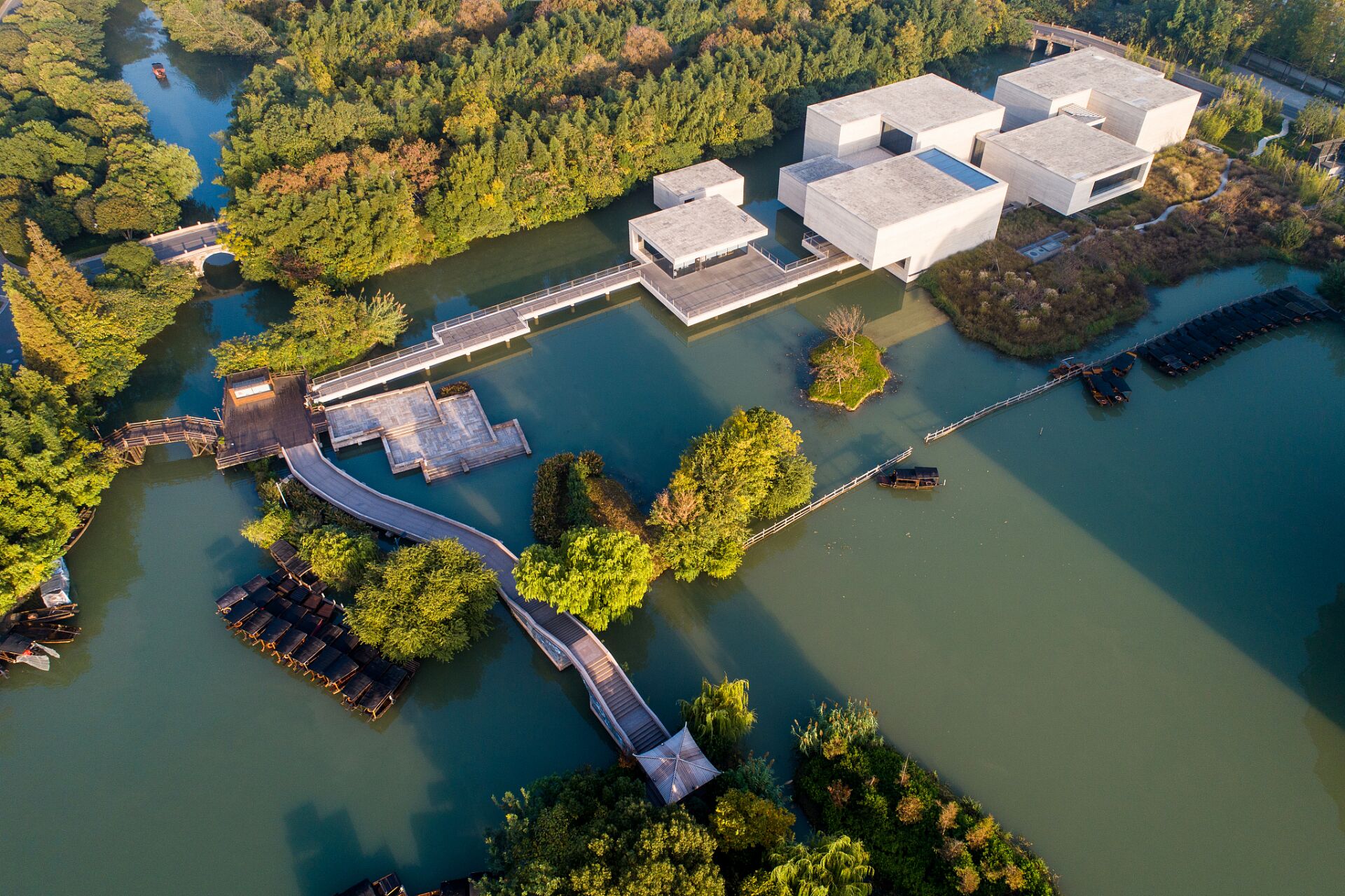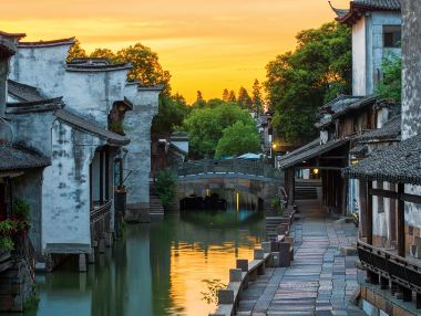 高度还原了水乡传统的水上集市早市,街道上遍布了农副产品和干货杂物,喝早茶e的,吃早饭的,跳广场舞停的,真是-派和谐热闹的景象。在早茶客临水而坐,点上几道富有当地特色的丰盛早点,背景是早晨忙碌而又井井有条的早市,有一种烟火人间的感觉。